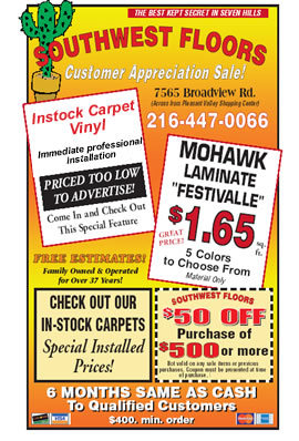 Southwest Floors 7565 Broadview Rd. Seven Hills, OH 44131 216-447-0066 [email protected] Products: Carpet . Laminate . Ceramic . Hardwood . Vinyl . Floor Care . Specials FAQ's . Resources . About Us . Contact Us . Our Store . Home Site Designed & Maintained by MEC Systems, Inc. ©2007 All Rights Reserved |